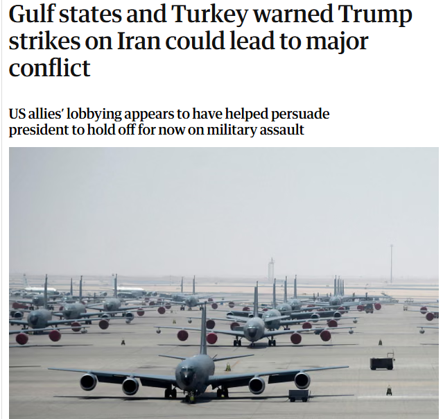 İngiliz basınından sızan bilgilere göre, aralarında Türkiye’nin de bulunduğu bölge ülkeleri, Donald Trump’ın İran’a yönelik planladığı hava harekâtını durdurmak için yoğun bir diplomasi trafiği yürüttü. The Guardian gazetesinin haberine göre; Türkiye, Suudi Arabistan, Katar ve Umman, Washington’a yaptıkları baskıyla Ortadoğu’yu ateşe atacak olası bir çatışmanın eşiğinden dönülmesini sağladı.