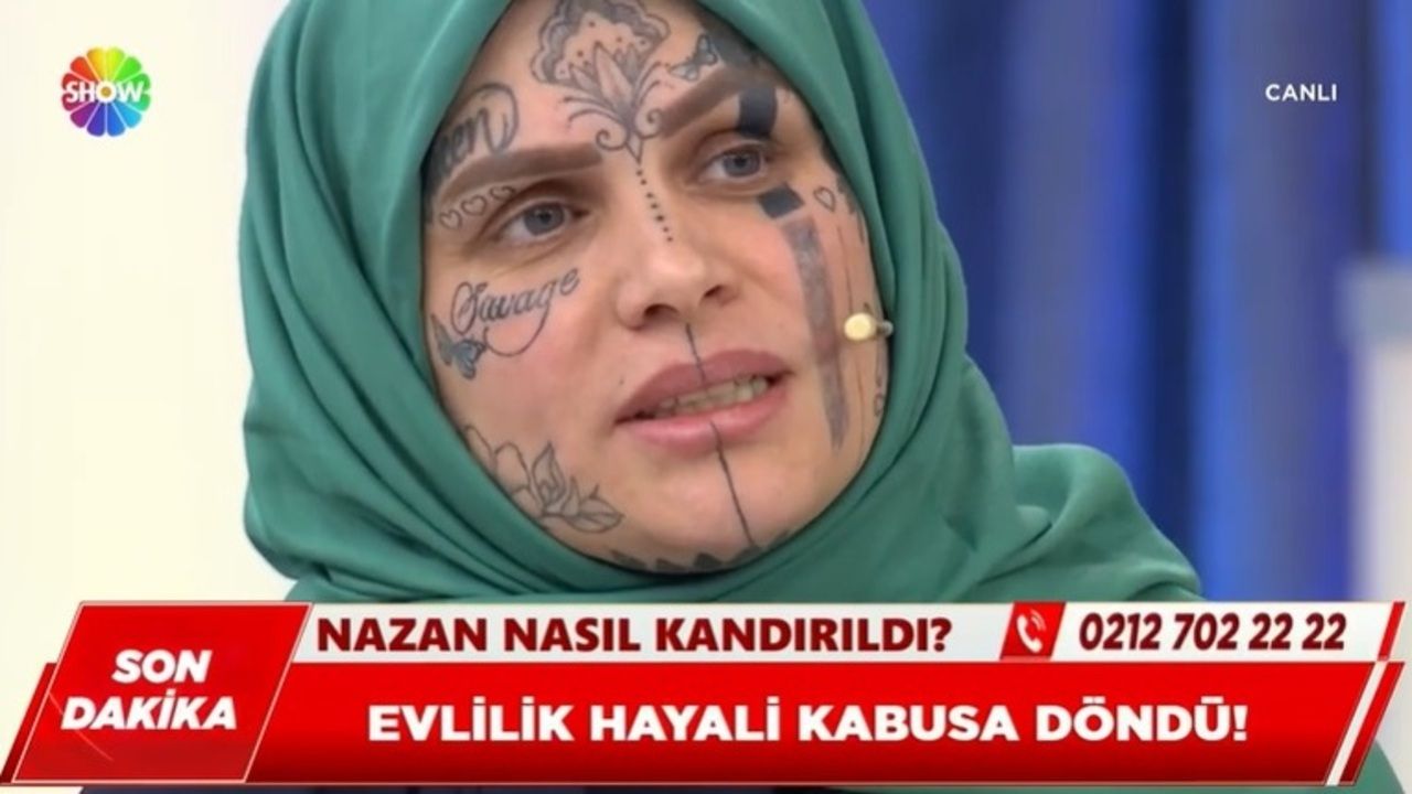 Programa katılan Nazan isimli kadının anlattıkları, dijital dünyanın tehlikelerini bir kez daha gözler önüne sererken; genç kadının yüzündeki dövmeler sosyal medyada çok konuşuldu.