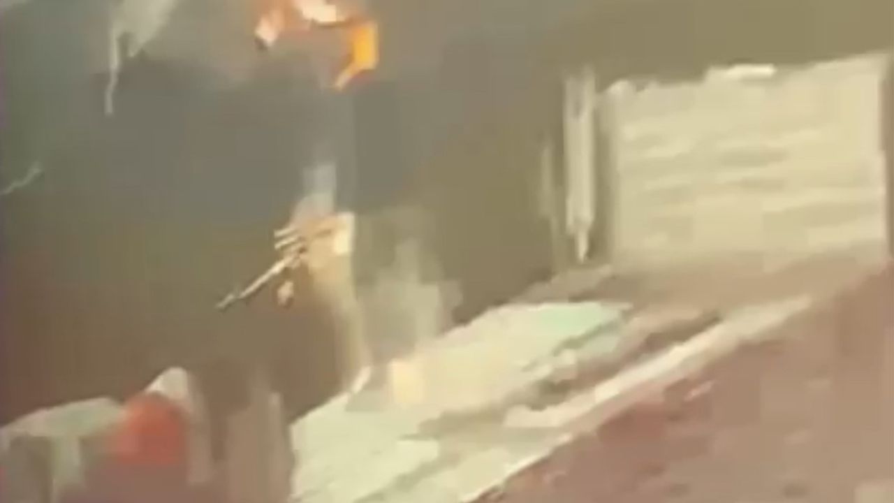 Öte yandan yıldırımın düştüğü anlar, iş yerinin güvenlik kamerasınca saniye saniye kaydedildi.