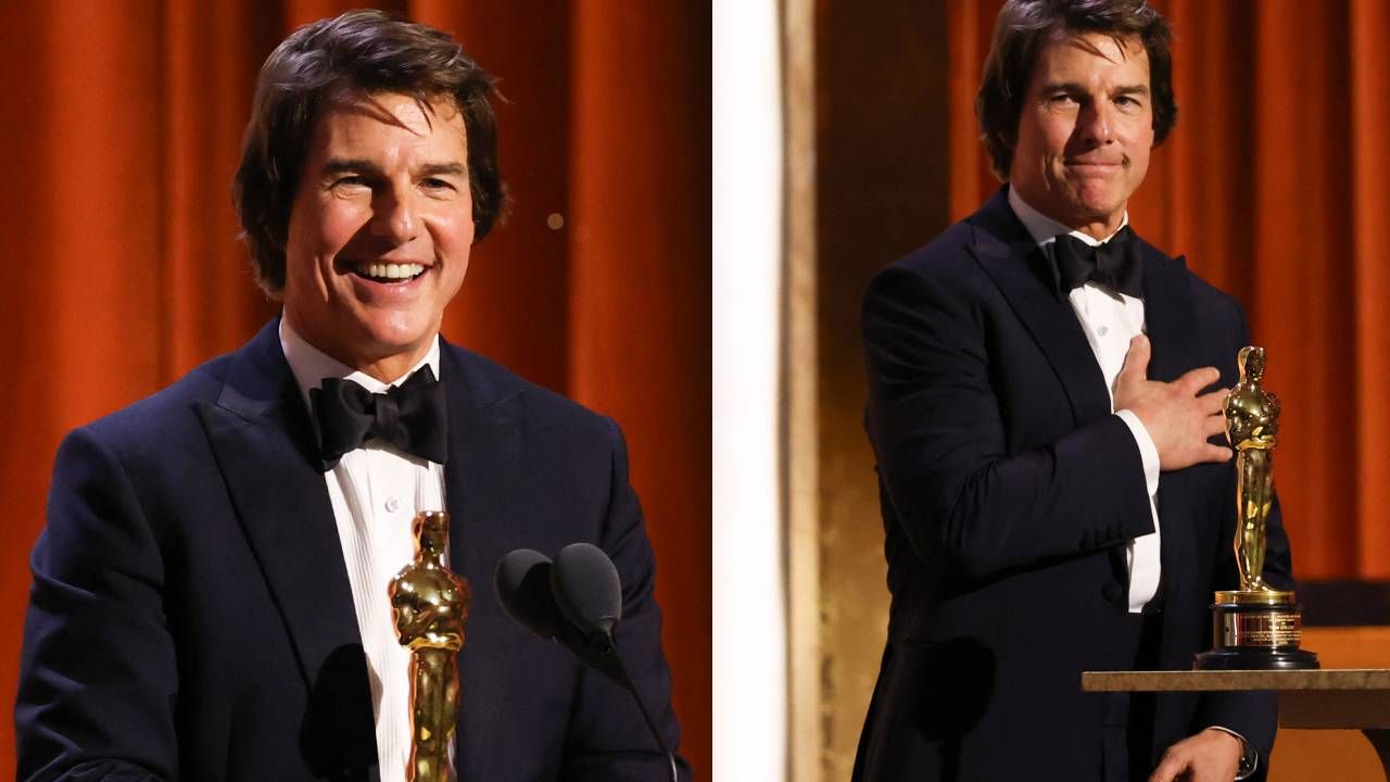 Tom Cruise makes a speech as he accepts his first-ever Oscar.