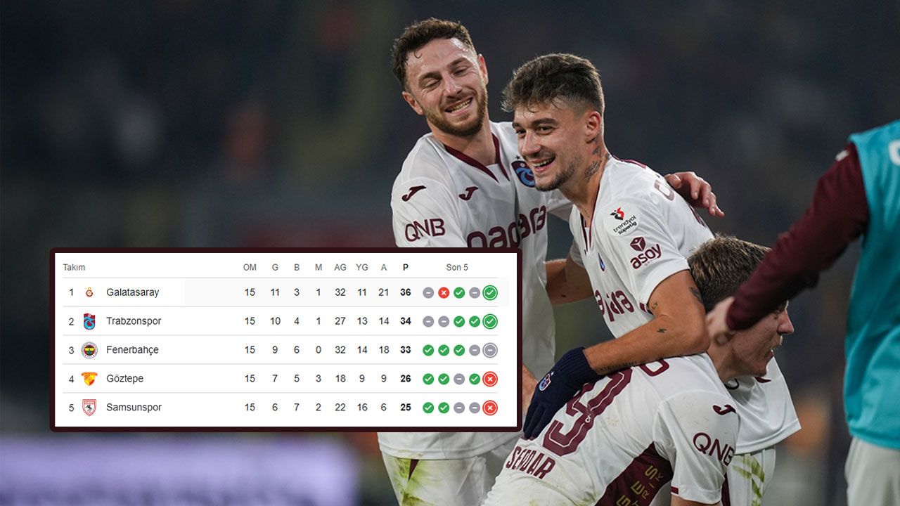 Bu skorun ardından üst üste 3. kez kazanan ve puanını 34'e yükselten Trabzonspor, 2. sıraya yerleşti. 4 maç sonra kaybeden Göztepe ise 26 puanla 4. basamakta yer aldı.