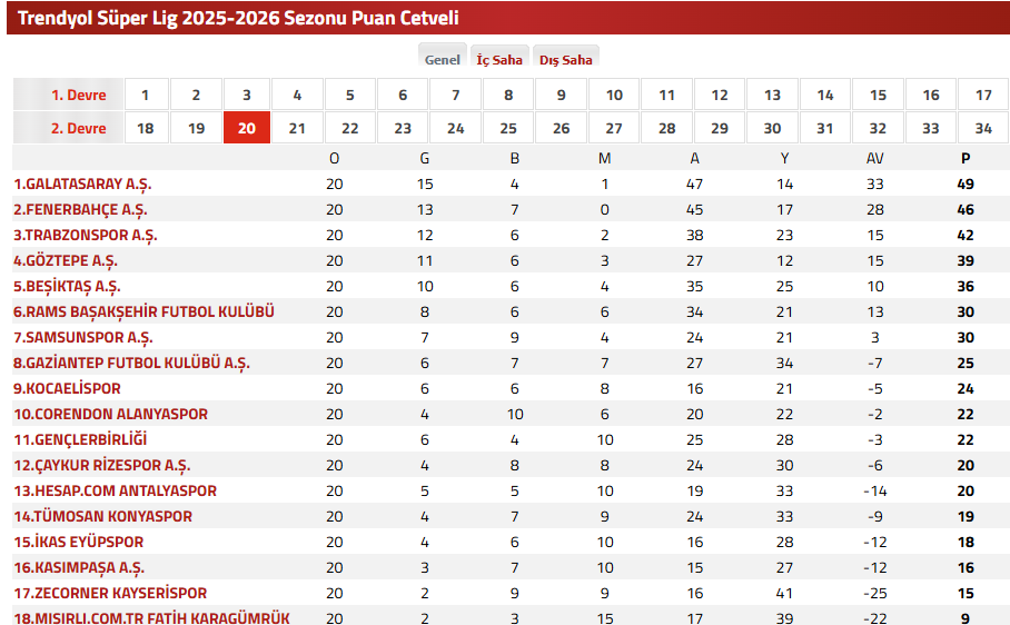 21. Hafta Süper Lig Maç Programı ve Statlar:
