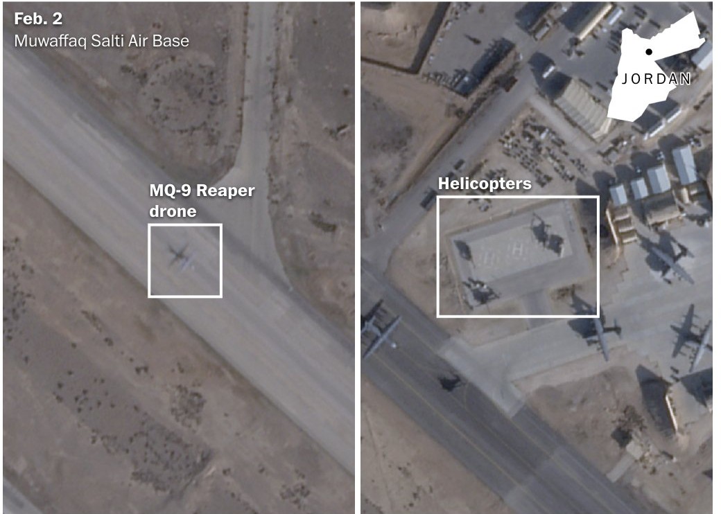 Pazartesi günü yansıyan son uydu fotoğraflarında, üste en az bir adet MQ-9 Reaper tipi insansız hava aracı ile çok sayıda genel maksat helikopterinin bulunduğu görüldü. Askeri uzmanlar, bu uçak ve helikopter kombinasyonunun tesadüf olmadığını savunuyor. Uzman yorumlarına göre bu yığınak; Pentagon’un, pilotların veya özel kuvvet birimlerinin düşman hattı gerisinden kurtarılmasını gerektirecek "en kötü senaryolara" karşı şimdiden hazırlık yaptığını gösteriyor.