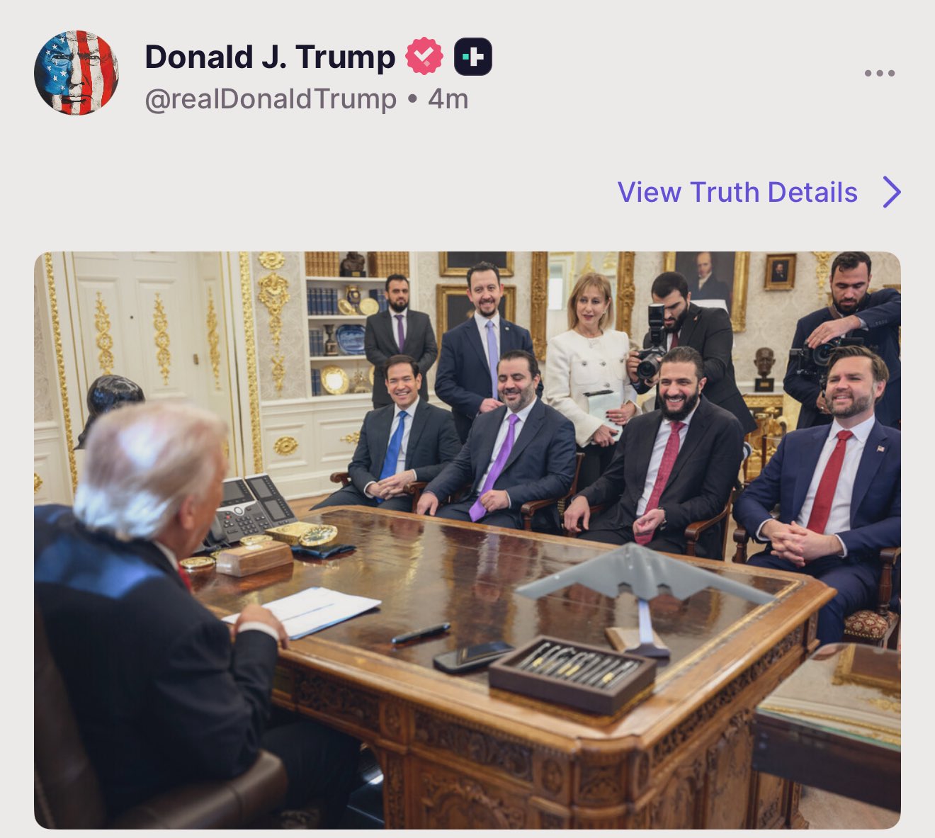 ABD Başkanı Donald Trump, Pazartesi günü Oval Ofis’te Suriye Devlet Başkanı Ahmed Eş-Şara ile gerçekleştirdiği tarihi görüşmeye ilişkin açıklamalarda bulundu.