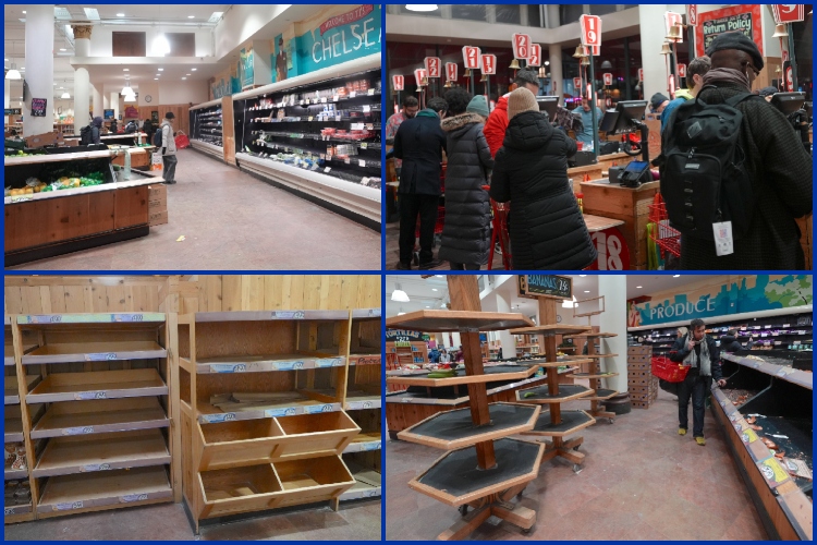 Yetkililerin "evde kalın" çağrısı sonrası, özellikle New York ve New Jersey gibi metropollerde panik alışverişi başladı. Süpermarketlerde temel gıda ürünlerinin bulunduğu raflar saatler içinde boşalırken; ekmek, su ve makarna gibi ürünlere ulaşmakta zorluk yaşandığı gözlendi.