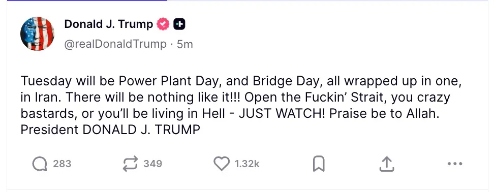 Trump, daha önce birkaç kez uzatılan ültimatom süresinin önümüzdeki Salı gecesi (TSİ 02:00) sona ereceğini duyurdu. Salı gününü "Enerji Santrali ve Köprü Günü" olarak adlandıran ABD Başkanı, bu süre zarfında boğaz açılmazsa Amerikan birliklerinin İran'daki enerji altyapısını ve stratejik köprüleri hedef alacağının sinyalini verdi.
