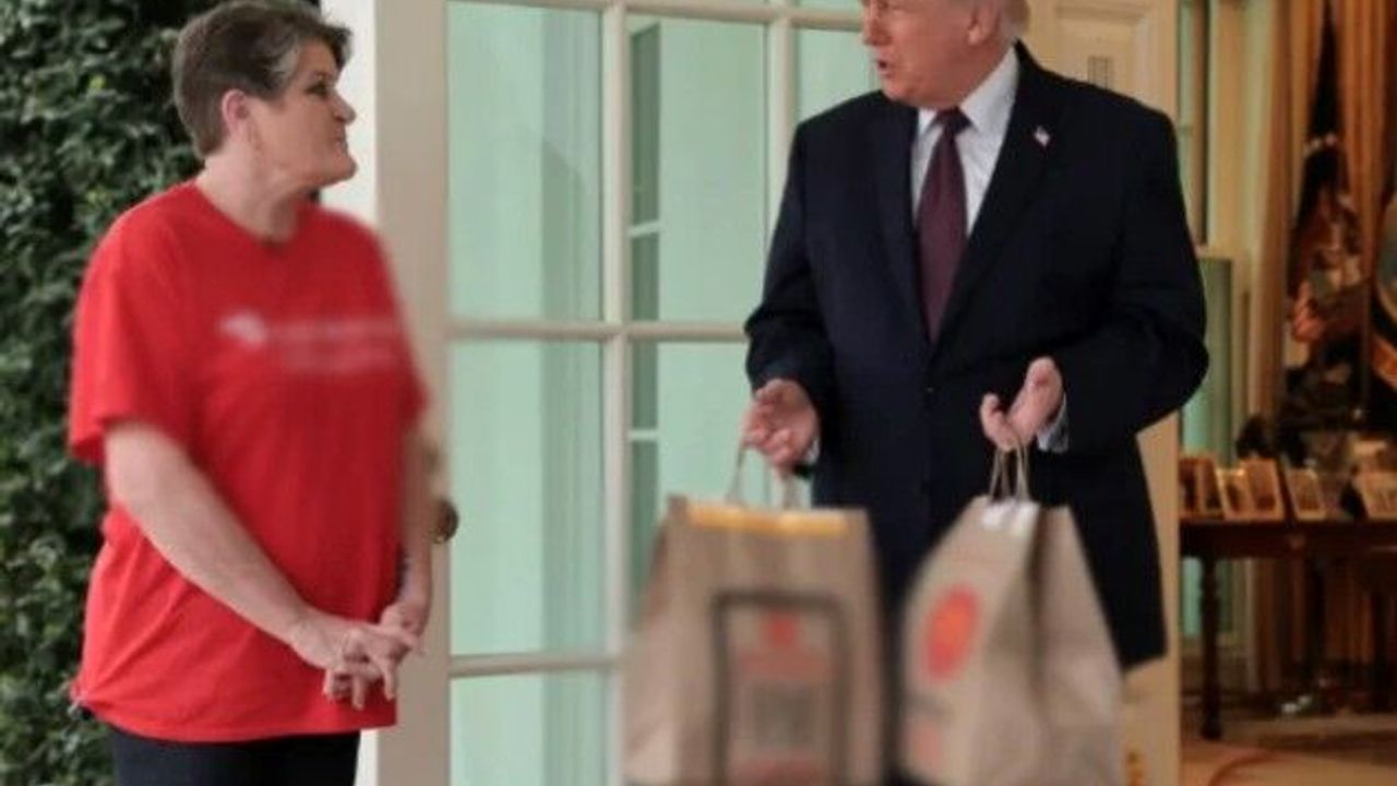 Kurye, Trump’ın sipariş ettiği iki torba fast food ürününü Batı Kanadı önünde teslim etti. Siparişte hamburger ve patates kızartması gibi ürünlerin bulunduğu belirtildi.