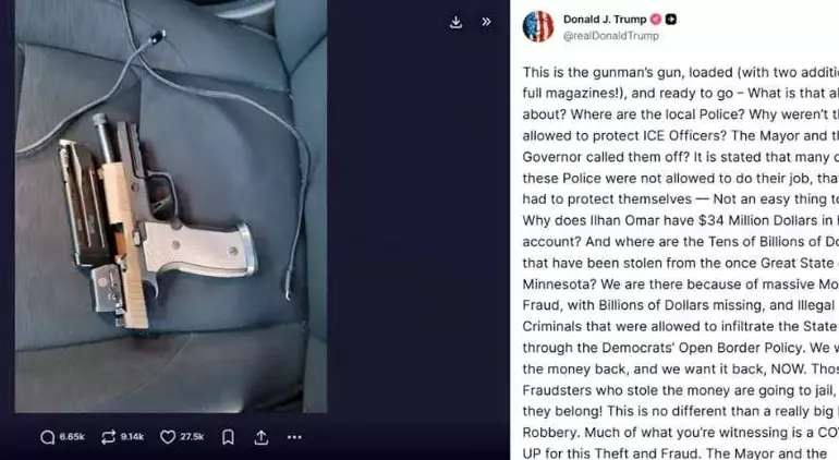 Açıklamalarında Minnesota Valisi ve Belediye Başkanı’nı sert bir dille eleştiren Trump, özellikle İlhan Omar gibi Demokrat isimleri hedef aldı. Eyalette milyarlarca dolarlık yolsuzluk yapıldığını iddia eden Trump, bu tür olayların mali skandalları ve "açık sınır politikalarını" gizlemek için kullanıldığını öne sürdü. Yerel yöneticileri "ikiyüzlü siyasi aptallar" olarak nitelendiren Trump, odaklanılması gerekenin sokak olayları değil, kaybolan paralar olduğunu savundu.
