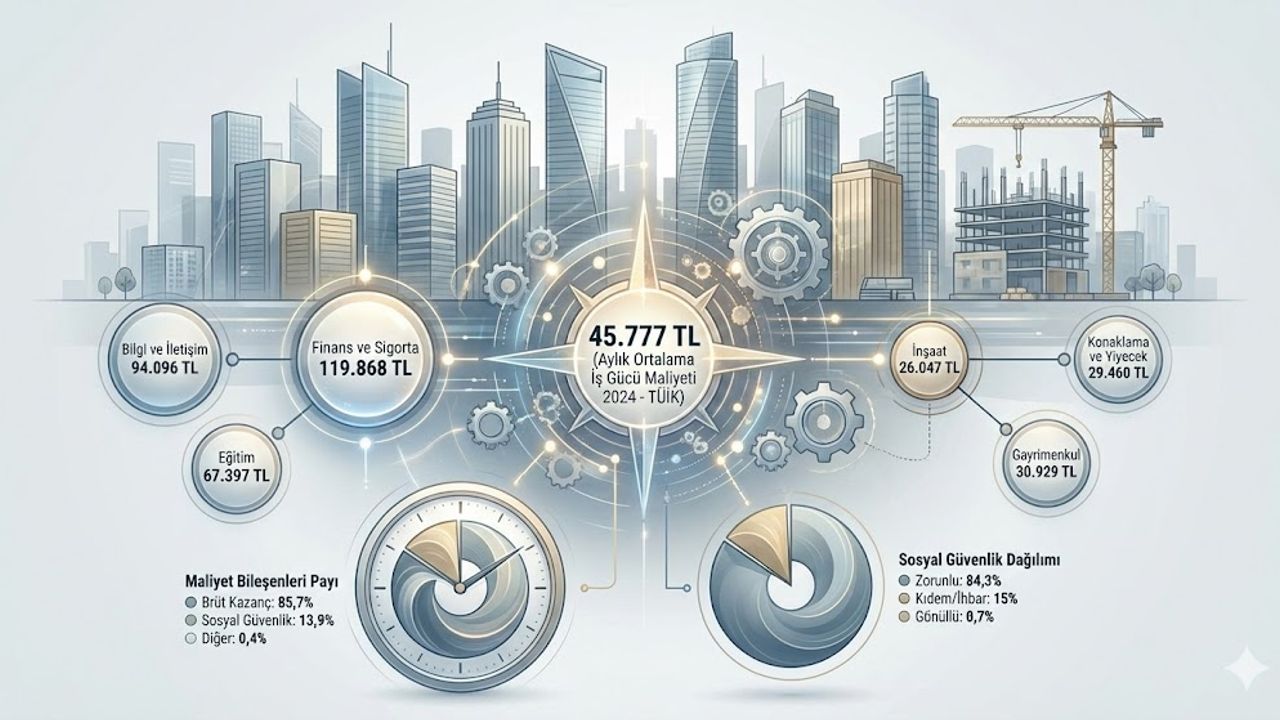 İstihdam edilenlerin işverene toplam maliyetini ve bu maliyet unsurlarının toplam içindeki dağılımını ortaya koymak amacıyla üretilen istatistiklere göre geçen yıl aylık ortalama iş gücü maliyeti 45 bin 777 lira oldu.