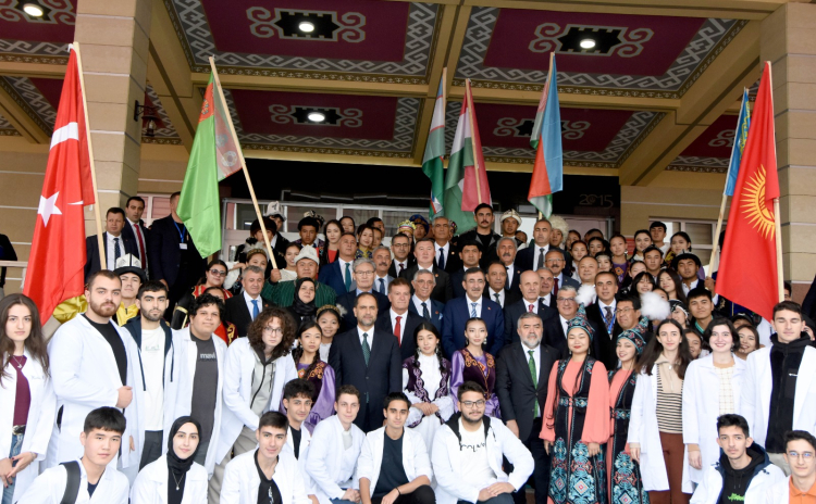 Sağlık Bilimleri Üniversitesi İle İş Birliği Manas Üniversitesi Tıp Fakültesi faaliyetlerini ‘‘Uluslararası Ortak Lisans Programı’’ altında İstanbul’da bulunan Sağlık Bilimleri Üniversitesi ile iş birliği halinde yürütüleceğini ifade eden Rektör Ceylan,''''Cumhurbaşkanı Recep Tayyip Erdoğan’ın talimatlarını yerine getirerek Tıp Fakültesini faaliyete geçirmekten büyük mutluluk duyuyoruz. Cumhurbaşkanımız Sayın Recep Tayyip Erdoğan’ın engin vizyonuyla verdikleri talimatı yerine getirmiş olmak büyük bir onurdur. Bu, artık Kırgızistan’da Türk eğitim sistemiyle yetişen genç doktorlara kavuşacağımız anlamına da geliyor. Bu da bizim için çok kıymetli.’’ dedi.