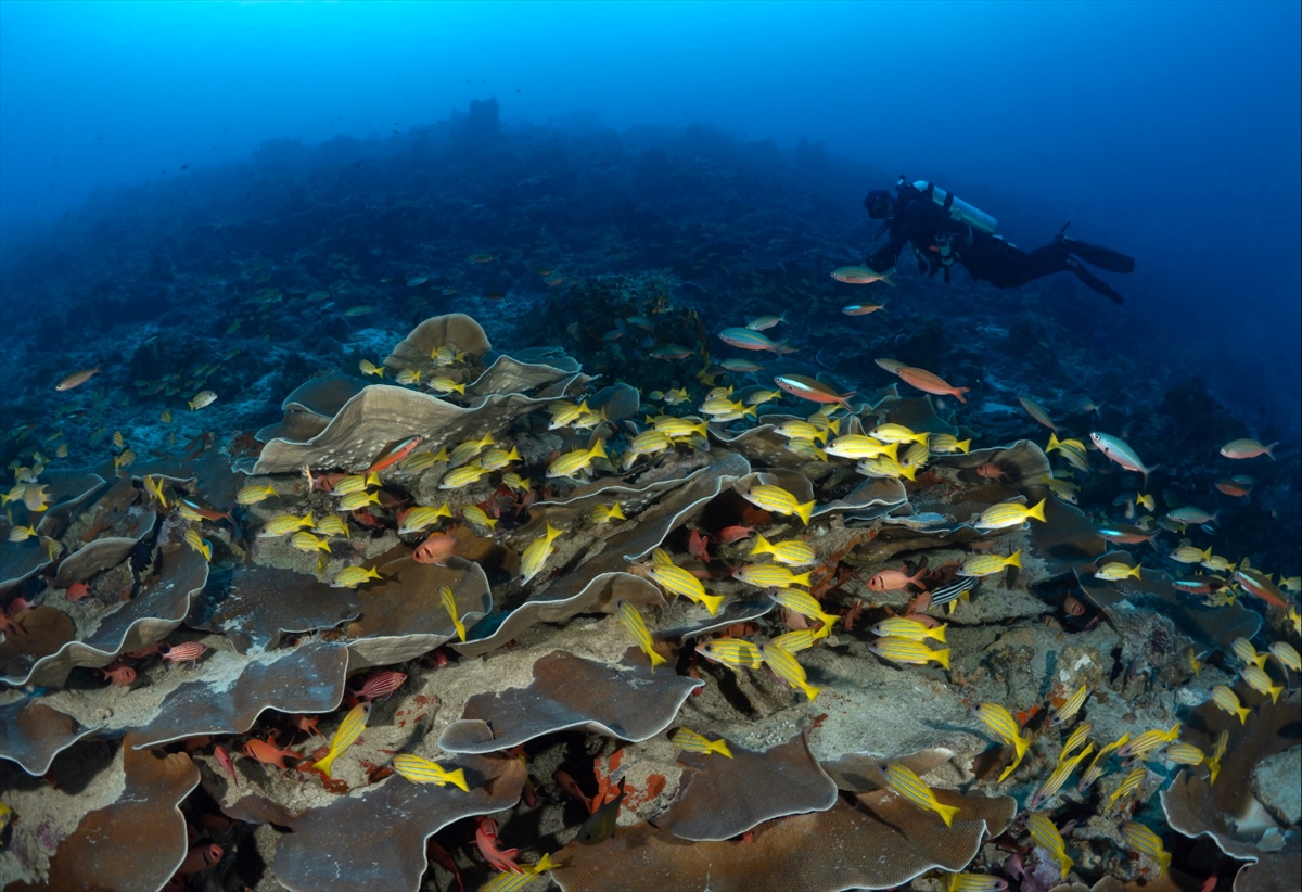 "Dalışın sonlarına doğru bu noktayı keşfettim. Bu rastlantısal bir keşif değildi. Uzun bir dalıştı. Yani doğal olarak yaklaşık 55 dakikalık bir dalışın sonunda artık tüpümdeki havanın üçte ikisini tüketmiştim. Sığda 8-10 metrelerde sarı mercan balıklarından küçük bir topluluğun fotoğraflarını çekiyordum. 5-10 dakika sonra da dalış sonuçlanacak ama onlar hafif aşağı yöneldiler. Aşağı yöneldiklerinde ben de onlarla yöneldim. Kanepe mercanı olarak da bilinen Merulina mercan topluluğu var. Onların oluşumunu gördüm ama çok büyük bir topluluktu. Her zaman her yerde bu kadar büyük göremezsiniz. Endonezya'da ünlü Raja Ampat Sualtı Milli Parkı'nda bulunan Sauwandarek dalış noktasında yoğun Merulina toplulukları var. Sarı kuyruklu mercan ve tatlı dudak balıkları bu mercanları tercih ediyorlar. Muhteşem bir manzara oluşuyor. Bunu görmem gerekir dedim. Tabii rehberim de var yanımda ve ben yönelince o da arkamdan geldi ve orada tabiri caizse ikinci bir Sauwandarek'i keşfetmiş oldum. Çok hızlı bir şekilde birkaç fotoğraf ve bir video çektim. Ekibe durumu bildirip noktanın koordinatlarını kaydetmelerini söyledim."