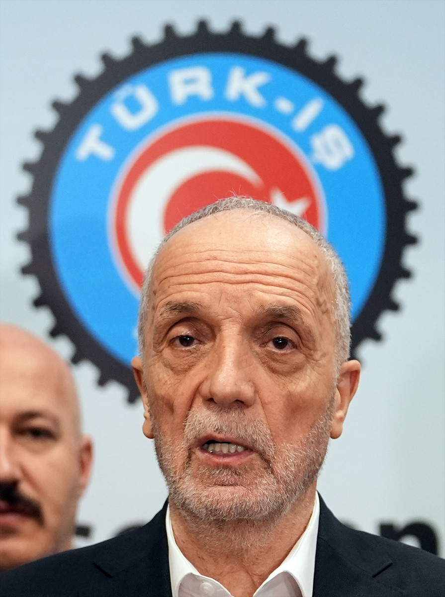 Bu yıl masada olmayacaklarını açıklayan Türkiye İşçi Sendikaları Konfederasyonu (TÜRK-İŞ) Başkanı Ergün Atalay, Asgari Ücret Tespit Komisyonu’na katılım kararını açıklıyor. TÜRK-İŞ bu yıl masada olmayacaklarını duyurmuştu.