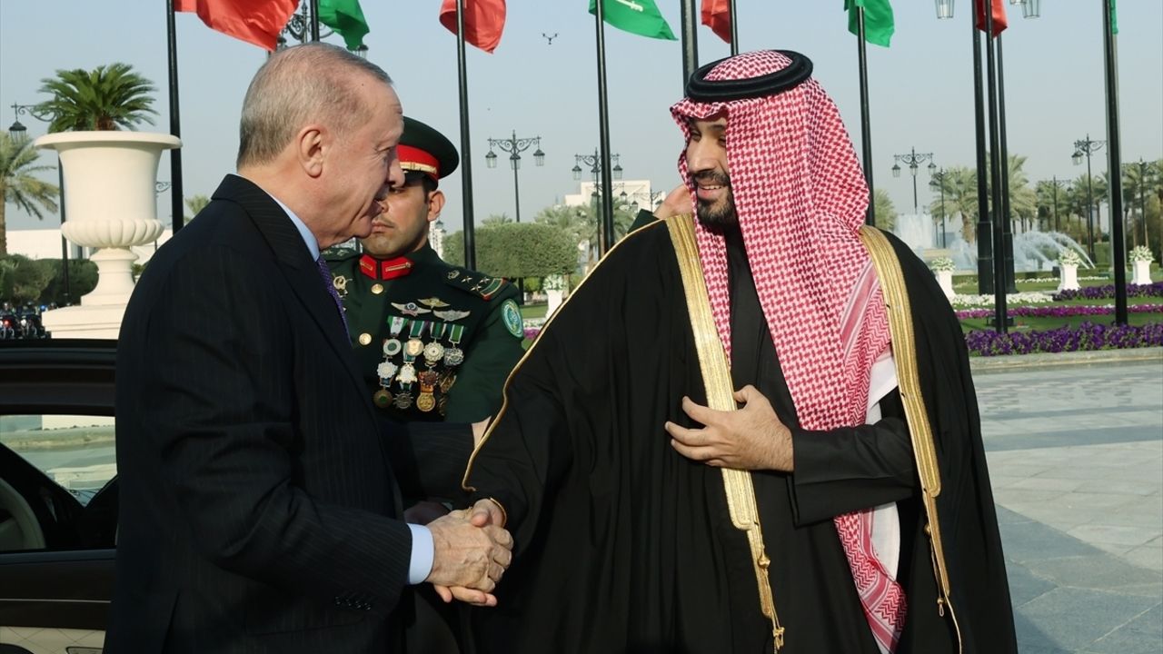 Cumhurbaşkanı Recep Tayyip Erdoğan, resmi ziyarette bulunmak üzere geldiği Suudi Arabistan'ın başkenti Riyad'da, Veliaht Prens Muhammed bin Selman tarafından resmi törenle karşılandı.