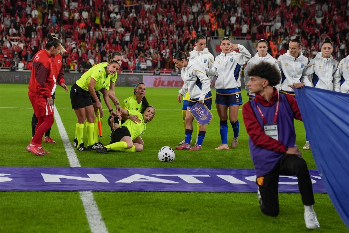 A Milli Kadın Futbol Takımı'nın Kosova ile yapacağı UEFA Uluslar B Ligi play-out rövanş maçı öncesi orta hakem baygınlık geçirdi.