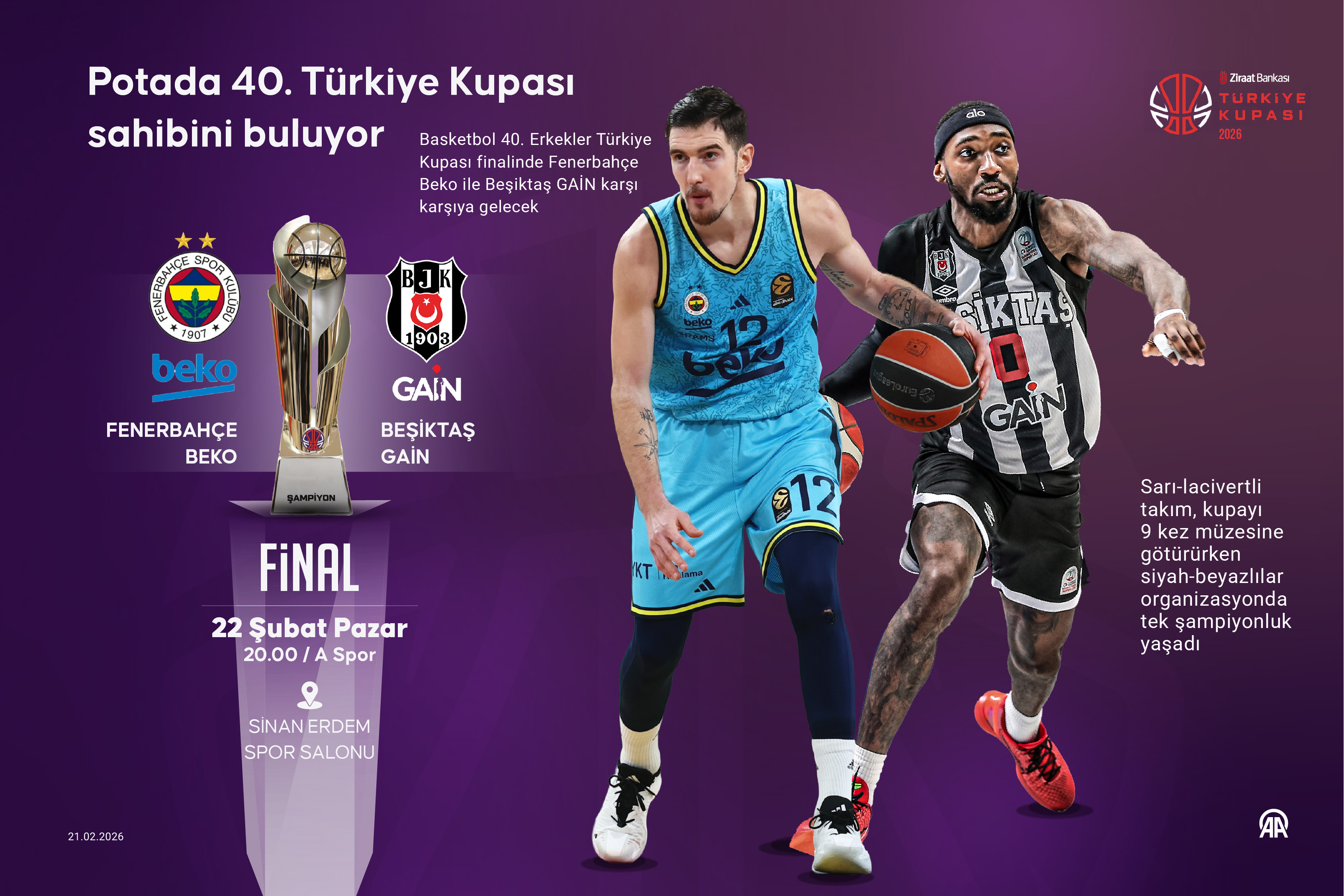 Basketbol 40. Erkekler Türkiye Kupası finalinde yarın Fenerbahçe Beko ile Beşiktaş GAİN karşı karşıya gelecek. Sinan Erdem Spor Salonu’nda oynanacak dev mücadele saat 20.00’de başlayacak ve A Spor’dan canlı olarak ekranlara gelecek.