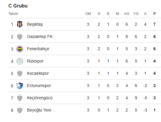 Kupada geride kalan üç maçta iki galibiyet ve bir mağlubiyet yaşayan Fenerbahçe, 6 puanla ve averajla grubun 3. sırasında yer alıyor. 3 maçta 2 galibiyet ve 1 mağlubiyeti olan Gaziantep FK ise averajla ikinci sırada bulunuyor.