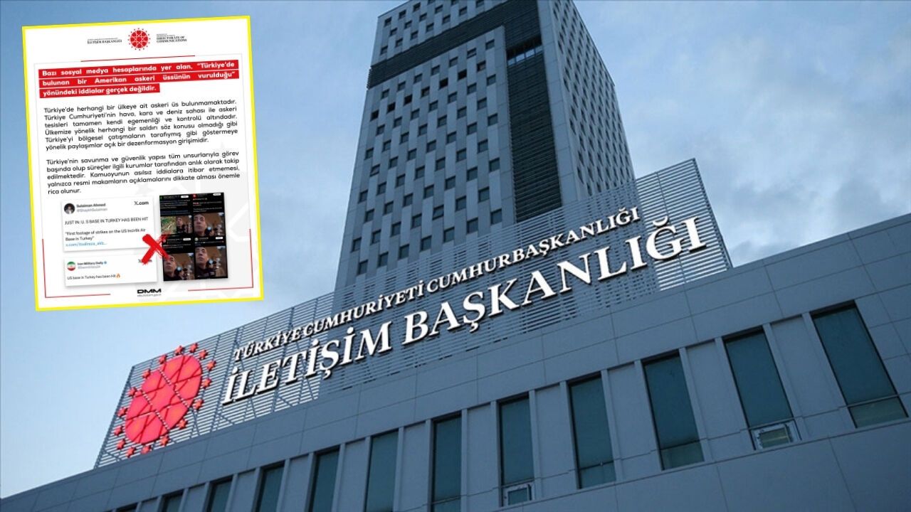 Cumhurbaşkanlığı İletişim Başkanlığı Dezenformasyonla Mücadele Merkezi'nden (DMM) yapılan açıklamada, bazı sosyal medya hesaplarında yer alan "Türkiye'de bulunan bir Amerikan askeri üssünün vurulduğu" yönündeki iddialar yalanlandı.