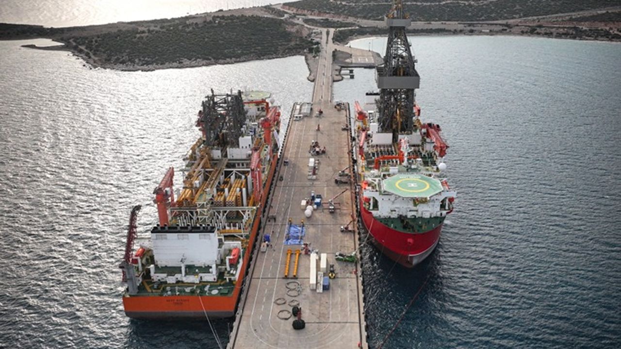 Türkiye'nin enerji filosuna eklenen 5. ve 6. ultra derin deniz sondaj gemileri, Mersin'deki Taşucu Ağalar İskelesi'nde yan yana görüntülendi.