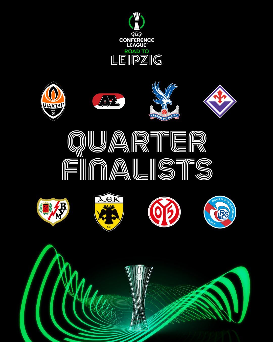 UEFA Konferans Ligi'nde Shakhtar Donetsk, Fiorentina, Rayo Vallecano, AZ Alkmaar, Crystal Palace, Mainz, AEK ve Strasbourg çeyrek finale kaldı.