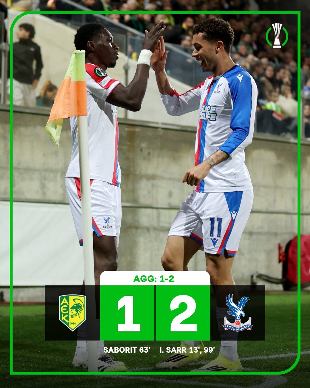 AEK Larnaca (Güney Kıbrıs Rum Yönetimi) - Crystal Palace (İngiltere): 1-2 (0-0)