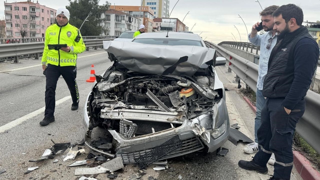 Kaza, Şehit Piyade Asteğmen Mehmet Bozkuş Köprüsü’nde meydana geldi. Edinilen bilgilere göre, G.T. (23) idaresindeki 64 LV 405 plakalı otomobil, önünde seyreden ve trafik yoğunluğu nedeniyle yavaşlayan S.Y. (46) yönetimindeki 64 AAU 395 plakalı otomobile çarptı.