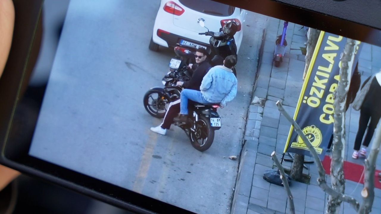 Denetimin devam ettiği esnada kasksız bir motosiklet sürücüsü uygulama noktasını gördü. Uygulama noktasını gören motosikletli, yol kenarında durarak ters yönden denetimden kaçtı. O anlar dron kamerasıyla kaydedildi.