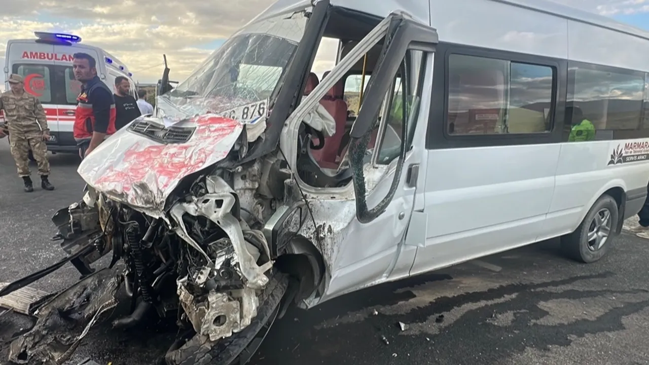 Erciş-Van kara yolunun Organize Sanayi Bölgesi Kavşağı''nda tır ile öğrenci servisi çarpıştı.