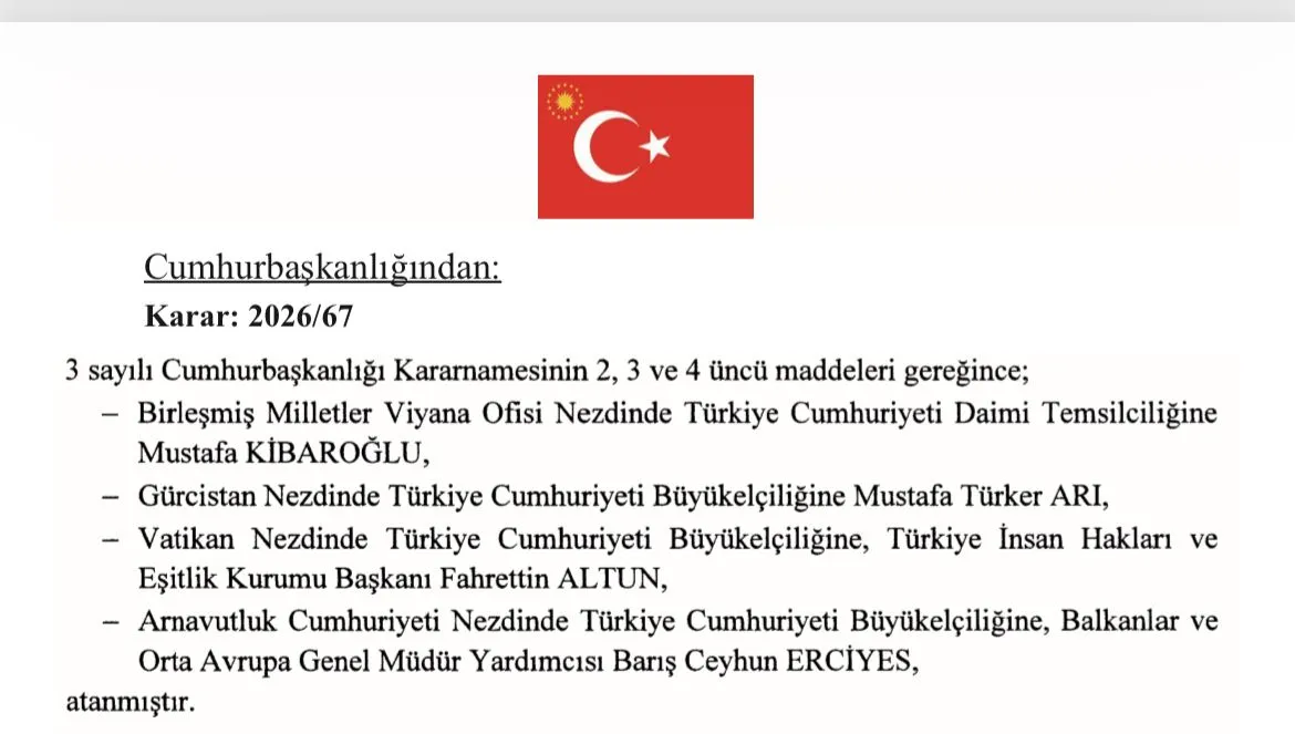 Vatikan Büyükelçiliği'ne Türkiye İnsan Hakları ve Eşitlik Kurumu (TİHEK) Başkanı Fahrettin Altun atandı.