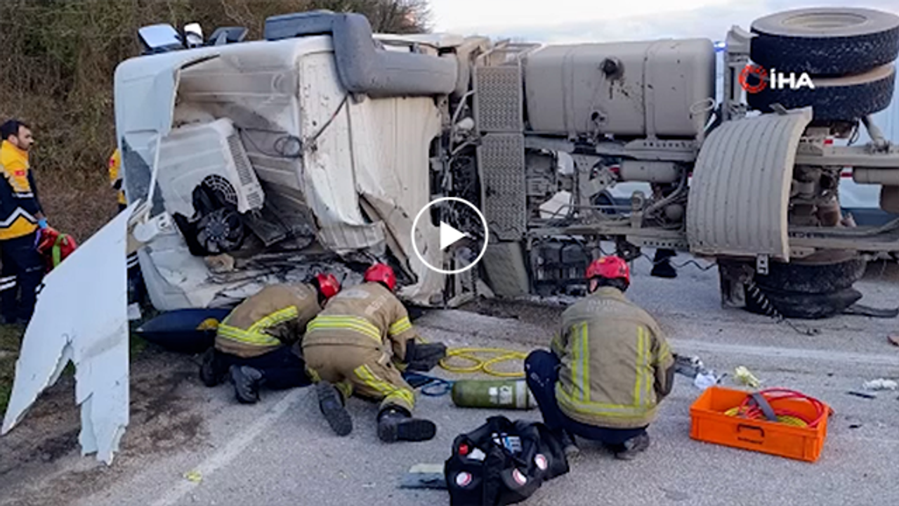 Beton tankeri devrildi: Sürücü hayatını kaybetti I VİDEO