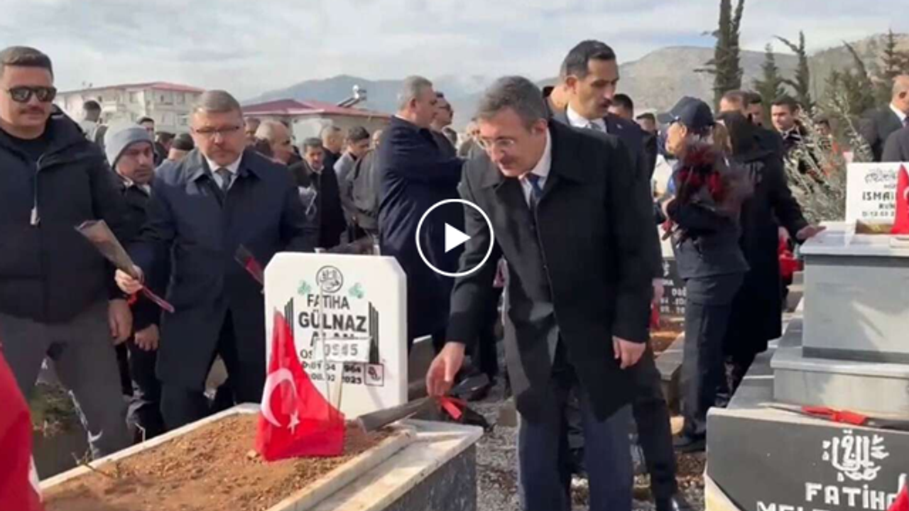 Cumhurbaşkanı Yardımcısı Yılmaz, deprem şehitlerinin mezarını ziyaret etti | VİDEO