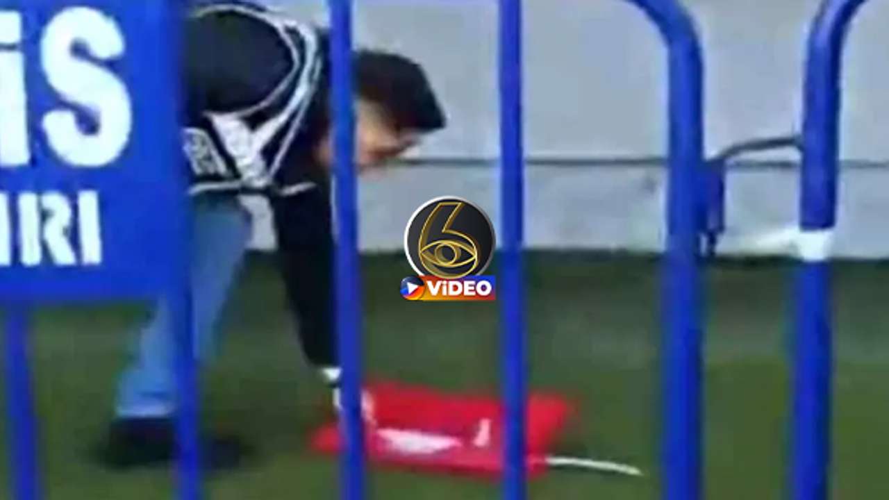 Maç sırasında Çankırı FK taraftarları arasında çıkan tartışmada bir taraftarın elindeki Türk...