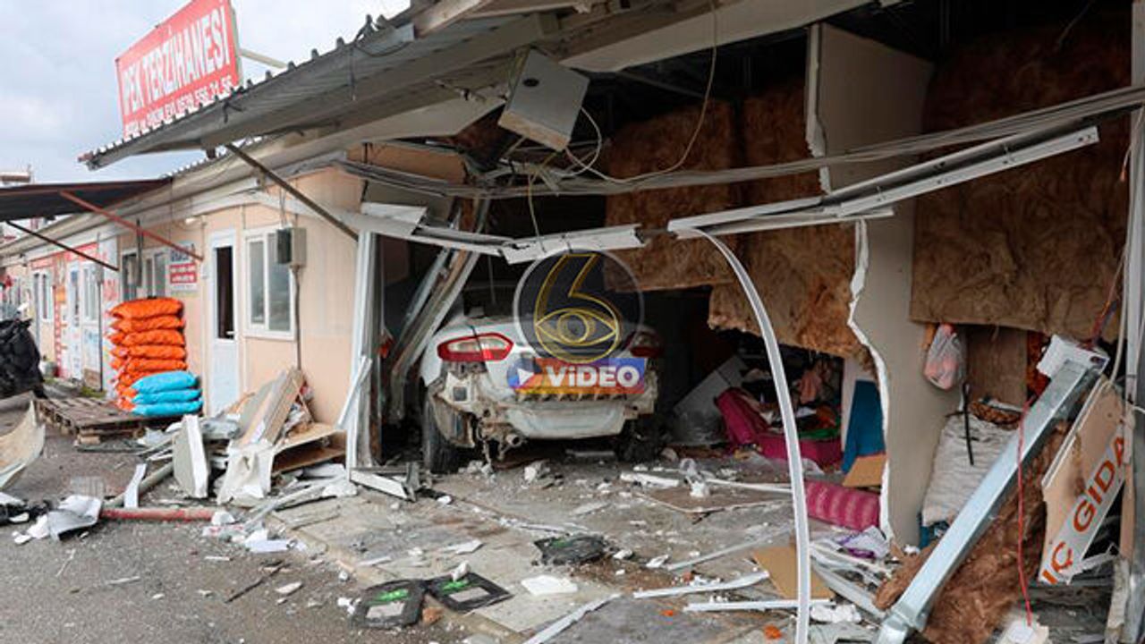 Defne ilçesinde sürücüsünün direksiyon hakimiyetini kaybettiği otomobil, prefabrik çarşıya daldı. Islak zeminde kayarak duramayan aracın üç dükkanın içinden geçtiği dehşet anları güvenlik kamerasına saniye saniye yansıdı.