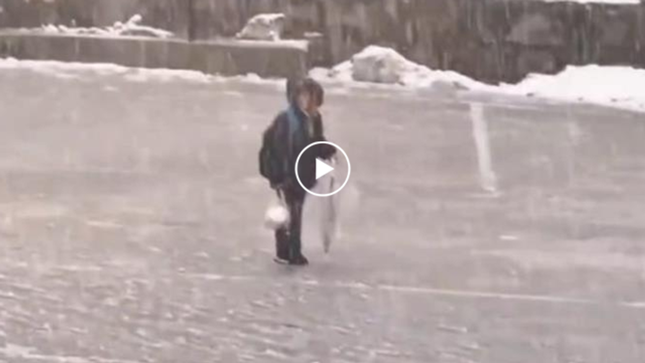 Kar altında İstiklal Marşı’nı okuyan çocuk yürekleri ısıttı! | VİDEO