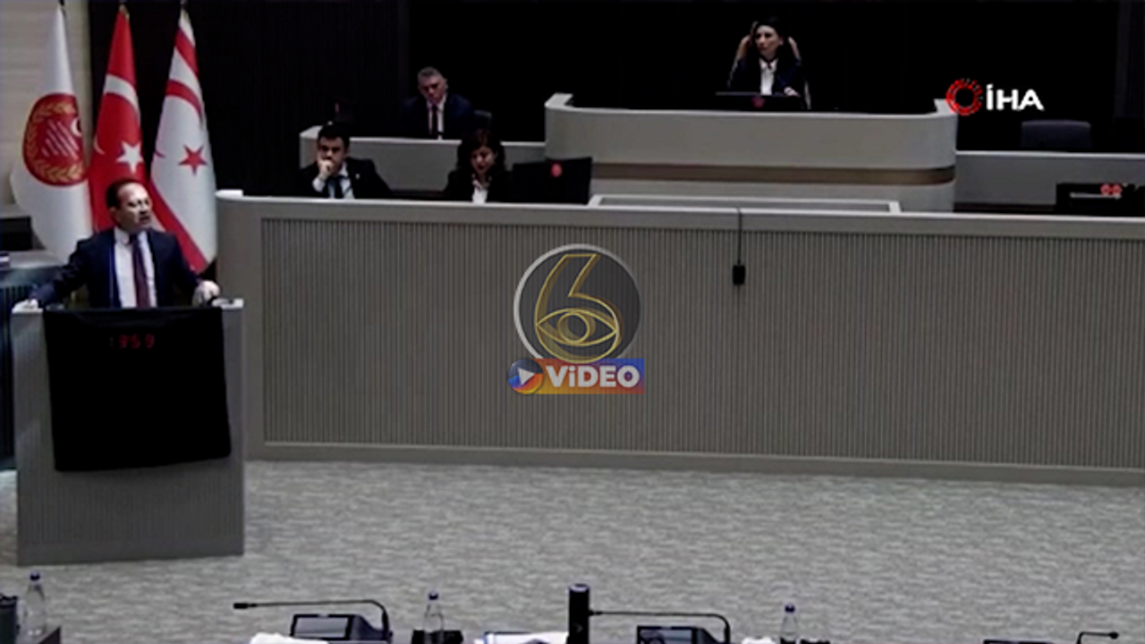 KKTC milletvekili meclis kürsüsüne siyah örtü astı, tansiyon yükseldi I VİDEO
