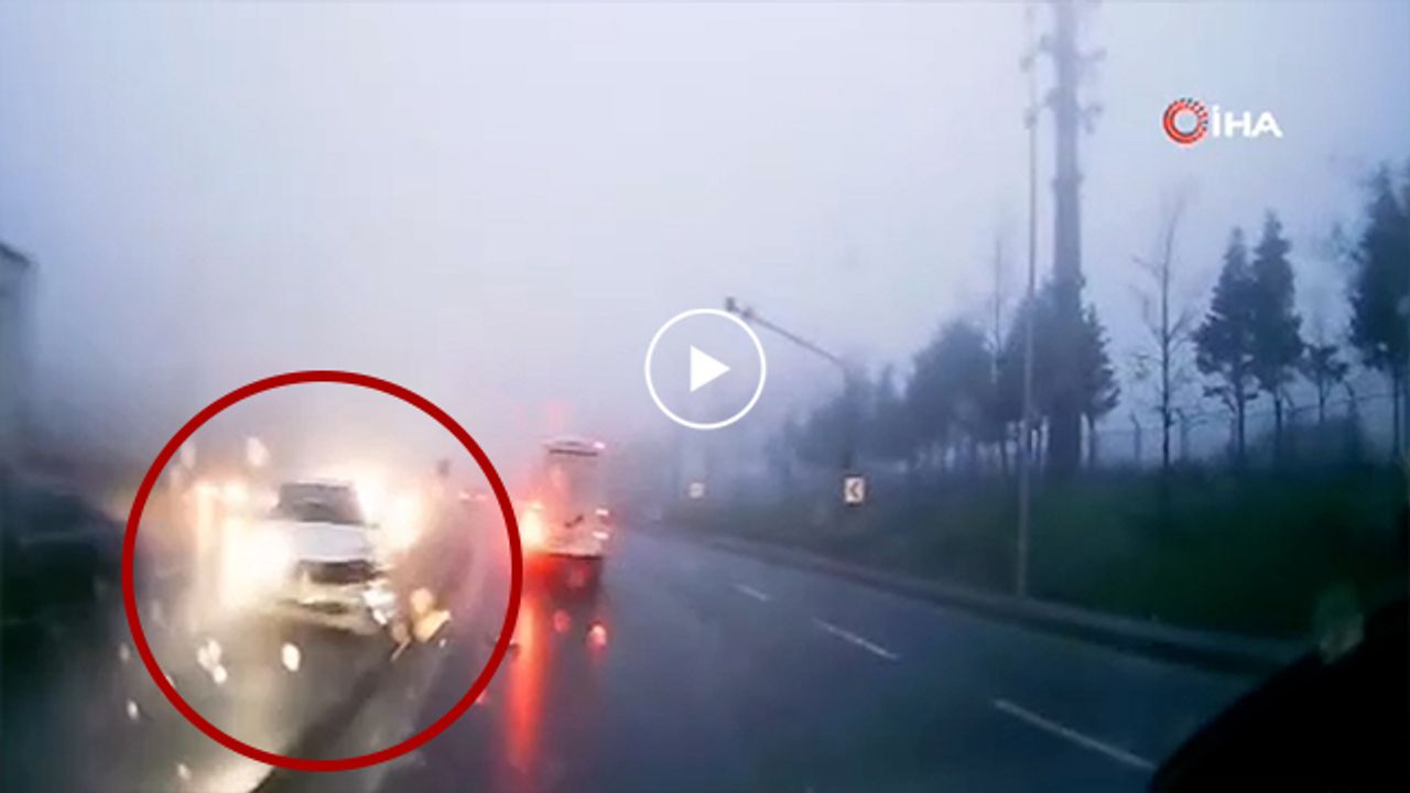 İstanbul’da dün etkili olan yağışlı havanın etkisiyle sürücüsünün kontrolünden çıkan bir otomobil refüje çıktı. Muhtemel bir facianın son anda önlendiği kaza anı, karşı şeritten ilerleyen bir aracın kamerasına saniye saniye yansıdı.