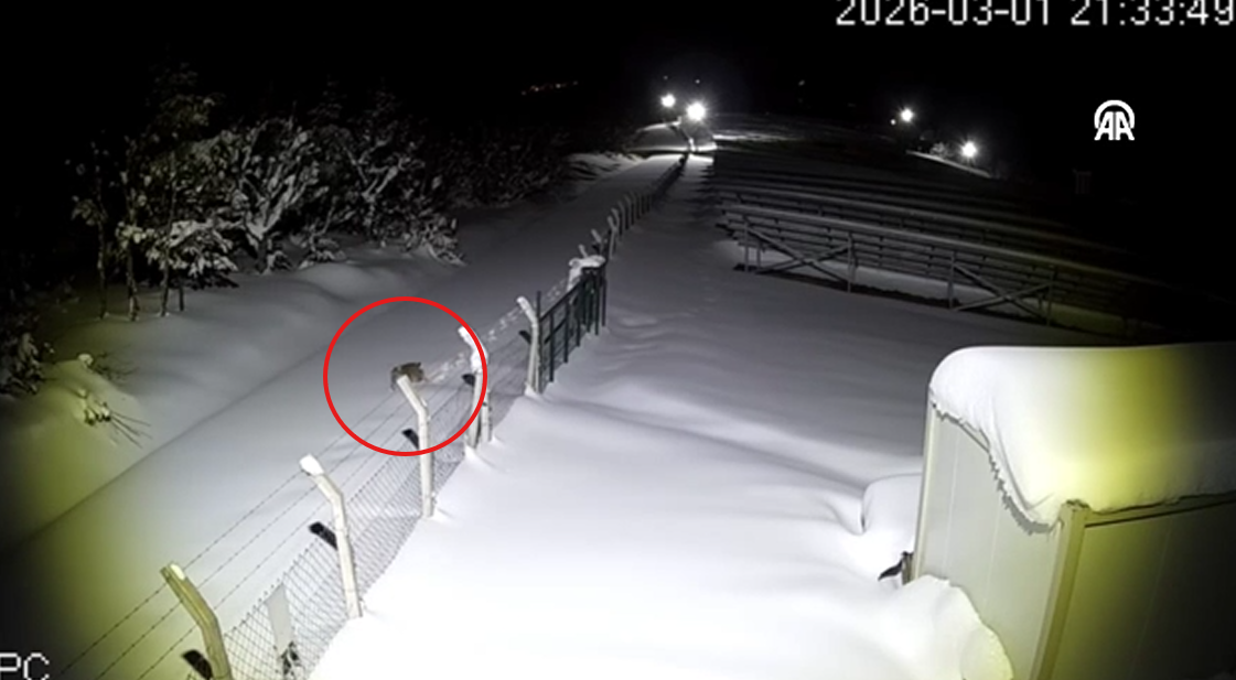 Gökçebayır Mahallesinde, Akkuş Belediyesine ait Güneş Enerjisi Santrali'nin bulunduğu karlı bölgede ilerleyen vaşak, bir süre çevrede dolaştı.