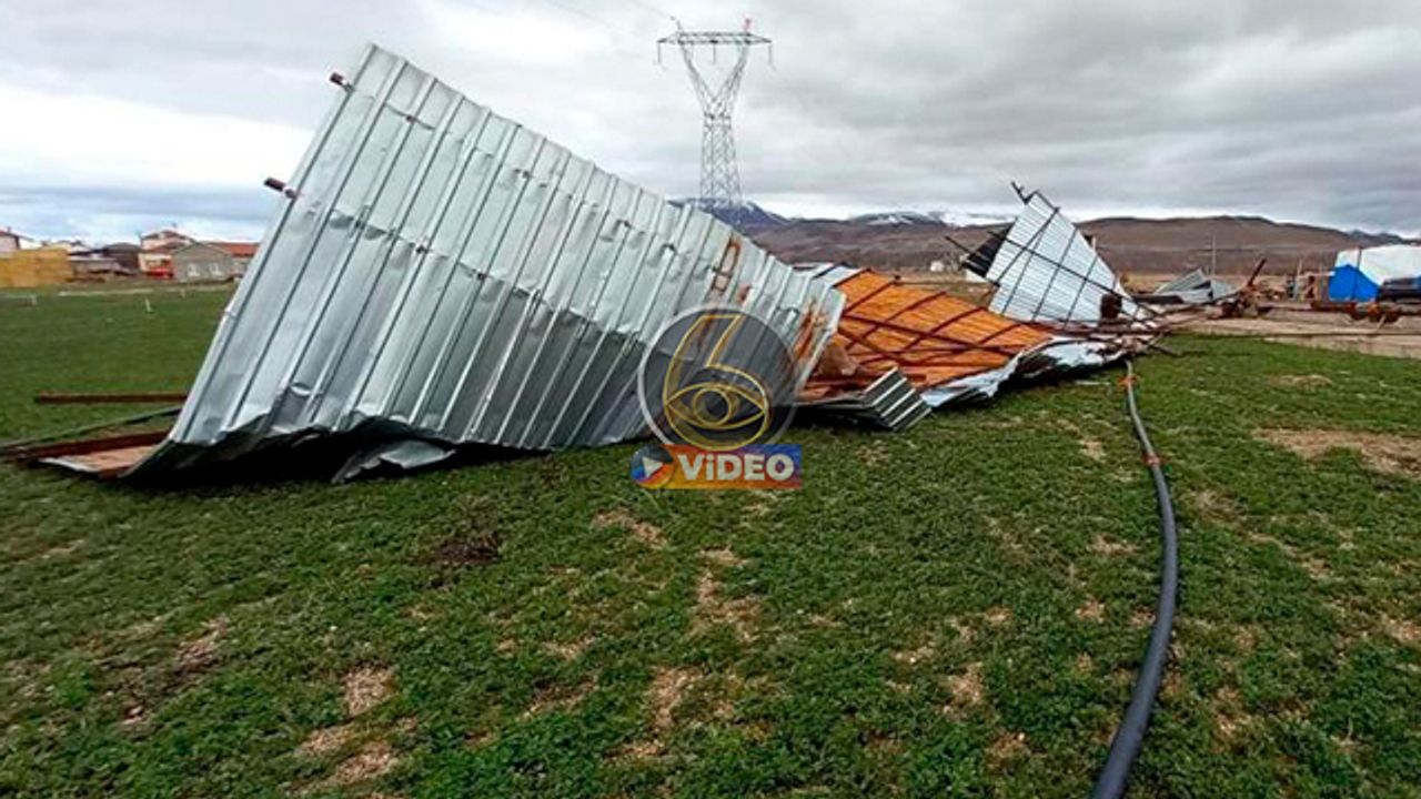Şiddetli rüzgar ahırın çatısını uçurdu I VİDEO
