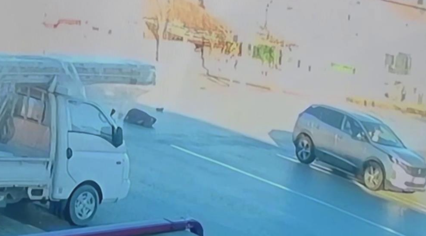 Görüntülerde şahsın yolun ortasından yürüyerek karşıya geçmeye çalıştığı esnada dönüş yapmakta olan SUV aracın çarparak yere savrulması görülüyor.