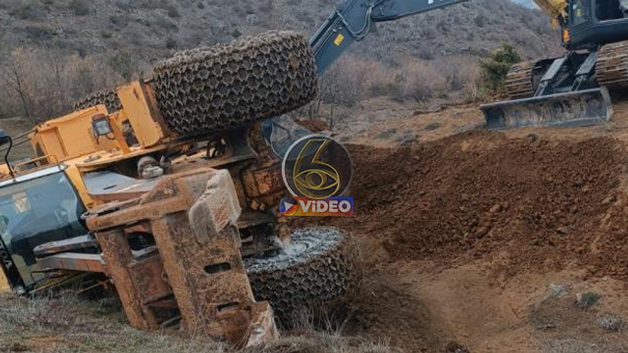 Yeşilyurt ilçesinde uçuruma yuvarlanan traktörü kurtarmak için bölgeye sevk edilen şantiye kepçesi, çalışma sırasında yan yatarak devrildi.