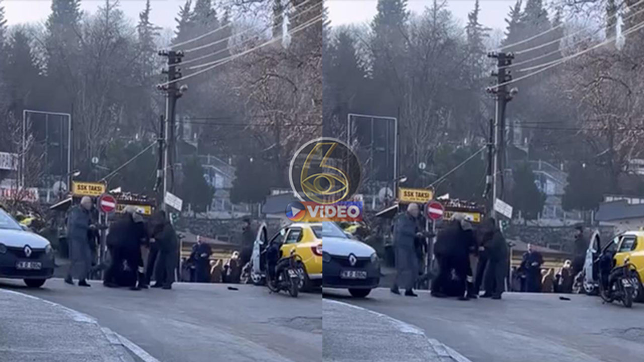 Bursa Osmangazi’de ticari taksi şoförü ile motosikletli arasında çıkan "yol verme" tartışması, saniyeler içinde meydan savaşına döndü.