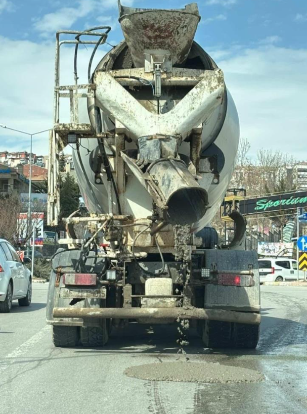 Olay, dün Abdullahpaşa Mahallesi'nde meydana geldi. Edinilen bilgiye göre, 45 AFT 015 plakalı beton mikseri, rampa çıktığı esnada yola beton döktü. O anlar ise bir başka sürücünün cep telefonu kamerasına yansıdı.
