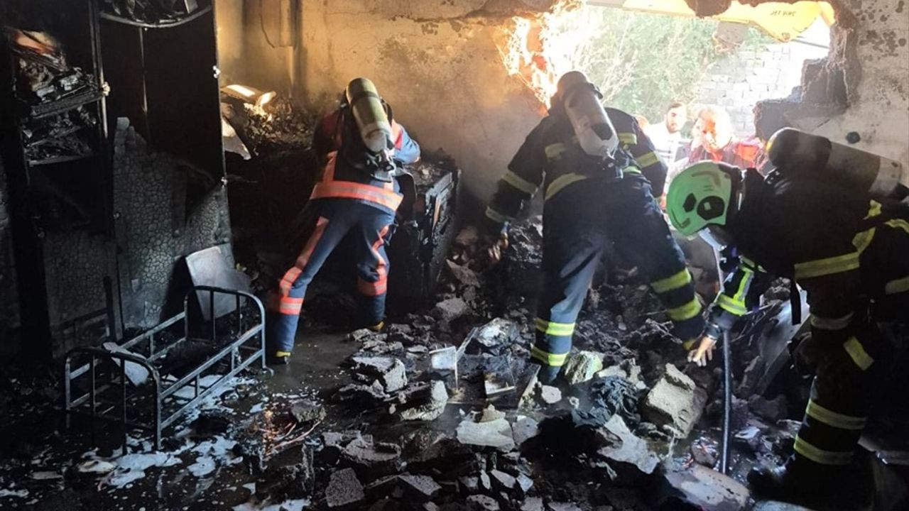 Yoğun duman nedeniyle binada mahsur kalanlar, itfaiye ekiplerince duvarı kırılan odadan tahliye edildi.