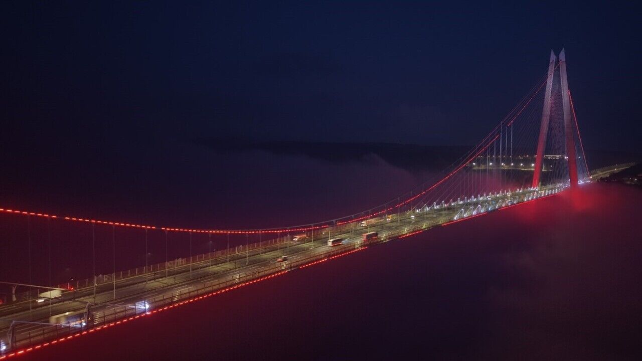 Akşam saatlerinin mavi tonları ile birleşen sis, köprü ve çevresinde büyüleyici bir atmosfer oluşturdu. Özellikle yüksek kesimlerde etkisini artıran sis nedeniyle köprünün kuleleri zaman zaman tamamen gözden kayboldu.