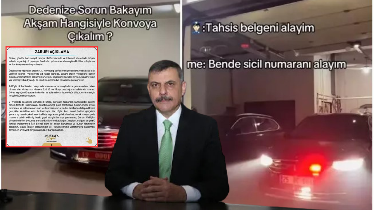 "18 yaşındaki evladımın valiliğe ait kapalı garajda çektiği videoyu kendi sosyal medya hesabından izinsiz olarak paylaştığını belirten Çiftçi; olayın gerçek bir trafik uygulamasında yaşanmadığını, tamamen mizahi bir kurgu olduğunu ifade etti."